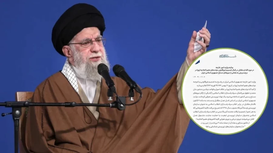 ईरान के विदेश मंत्रालय ने अपने बयान में कहा कि यूरोपीय संघ द्वारा आईआरजीसी के खिलाफ की गई कार्रवाई संयुक्त राष्ट्र चार्टर और अंतरराष्ट्रीय कानून के बुनियादी सिद्धांतों के विरुद्ध है। मंत्रालय के अनुसार, यह निर्णय पारस्परिक जवाबी कार्रवाई के तहत लिया गया है। विदेश मंत्रालय के बयान में कहा गया है कि 2019 में अमेरिका द्वारा आईआरजीसी को आतंकवादी संगठन घोषित किए जाने के बाद ईरान ने पारस्परिक कार्रवाई संबंधी कानून के अनुच्छेद 7 के तहत यह कदम उठाया है। इस कानून के अनुसार, जो भी देश अमेरिका के इस निर्णय का समर्थन या अनुसरण करेगा, उसके खिलाफ ईरान पारस्परिक कार्रवाई करेगा।