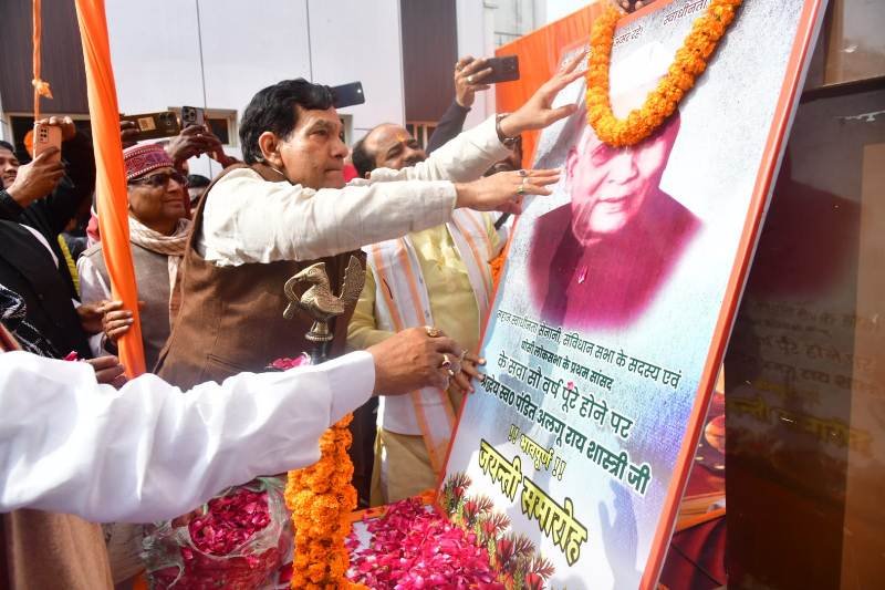 लखनऊ: नगर विकास एवं ऊर्जा मंत्री श्री ए.के. शर्मा ने नगर पालिका कम्युनिटी हाल, मऊ में आयोजित महान स्वतंत्रता संग्राम सेनानी एवं संविधान सभा सदस्य स्वर्गीय पंडित अलगू राय शास्त्री जी की जयंती समारोह में सहभागिता की। इस अवसर पर उन्होंने पंडित अलगू राय शास्त्री जी को नमन करते हुए कहा कि ऐसे महापुरुषों का जीवन और विचार आज भी लोकतंत्र, राष्ट्र निर्माण और सामाजिक चेतना को मजबूत करने का कार्य करते हैं।