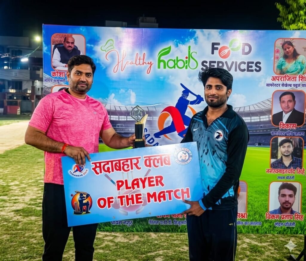 प्रयागराज। गंगा इलेवन ने बैहराना वारियर्स को और इलाइट इलेवन ने धुरंधर इलेवन को प्रीतम नगर रात्रिकालीन टेनिसबाल क्रिकेट प्रतियोगिता में हराकर अगले राऊंड में प्रवेश किया। सदाबहार क्लब के तत्वावधान में प्रतियोगिता प्रीतम नगर गोकुल आवास स्थित पीला पार्क में आयोजित की गई है।पहले मैच में बल्लेबाजी करते हुए गंगा इलेवन ने 5 विकेट खोकर 52 रन (अभिषेक 15, जीशान 10, रेहान 10, बैभव 2 और आदर्श 1 विकेट) बनाये। जवाब में उतरी इलाइट इलेवन ने 6 विकेट खोकर 44 रन (सिज्जू 26 रन, सुभम रावत 6 रन, अभिषेक 2 और फहीम 1 विकेट) ही बना सकी। अभिषेक को प्लेयर ऑफ द मैच का पुरस्कार के लिए चुना गया। दूसरे मैच में पहले बल्लेबाजी करते हुए धुरंधर इलेवन ने आठ विकेट खोकर केवल 29 रन (अलोक 7, विश्वनाथ 6, विनय 3 विकेट, अविरल 1 विकेट) बनाये। जवाब में उतरी इलाइट इलेवन ने मात्रा एक विकेट खोकर (विनय 16 रन, मिंशू 12 रन) आसानी से लक्ष्य को प्राप्त कर लिया। विनय को प्लेयर ऑफ द मैच का पुरस्कार श्रम प्रवर्तन अधिकारी प्रयागराज सचिन द्विवेदी ने दिया। अभय श्रीवास्तव और अतुल सिंह ने मैच में अंपायरिंग, सत्यम शुक्ला ने स्कोरिंग एवं पियूष श्रीवास्तव ने कमेंट्री की। थर्ड अम्पायर की भूमिका दीपक सिंह ‘मोंटू’ ने निभाई।