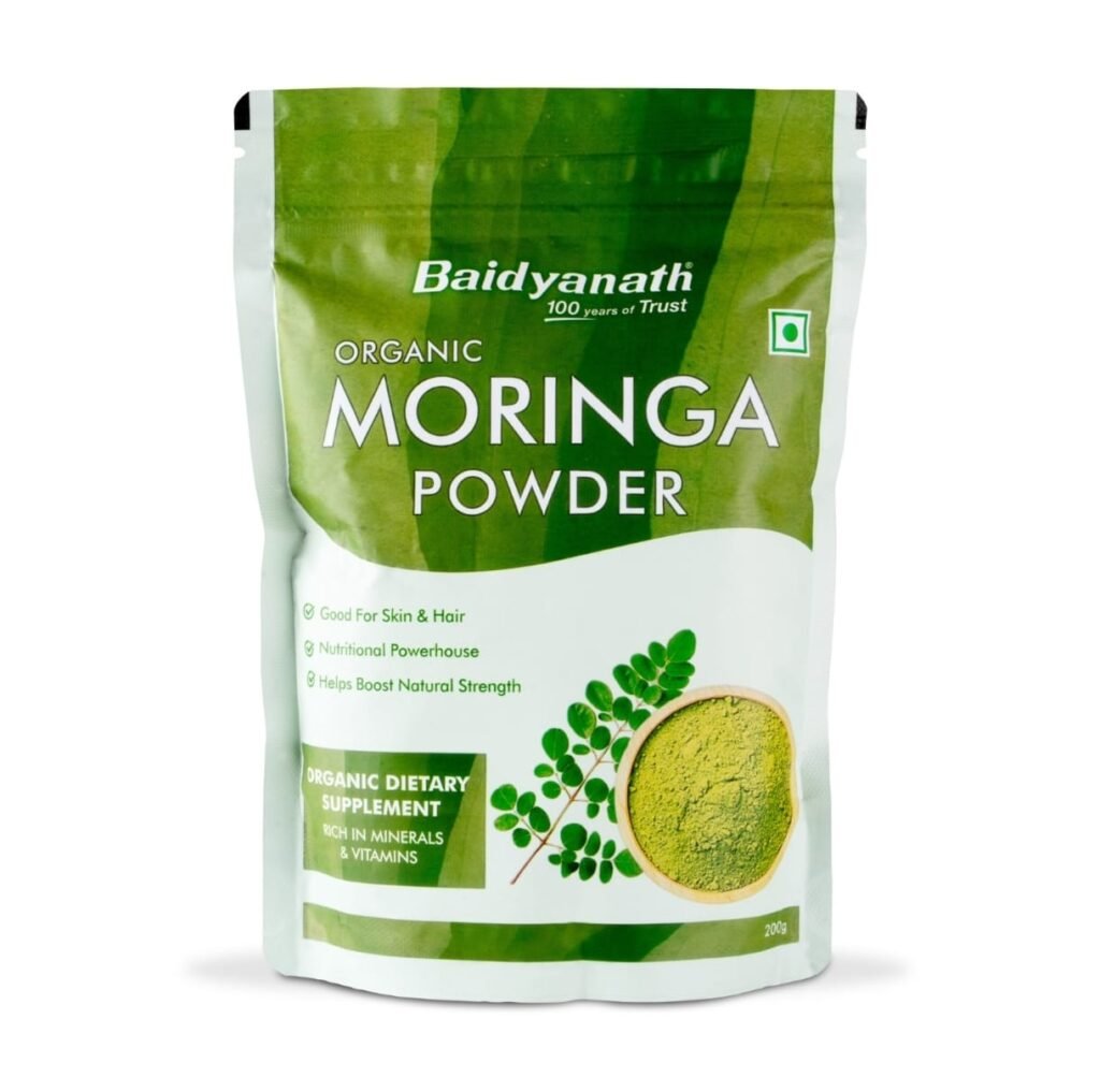 बैद्यनाथ सर्टिफाइड ऑर्गेनिक मोरिंगा पाउडर को सावधानीपूर्वक चुनी गई मोरिंगा की पत्तियों से तैयार किया गया है। इसमें विटामिन ए और सी जैसे पौधों पर आधारित पोषक तत्व और प्राकृतिक रूप से पाए जाने वाले ‘फाइटोन्यूट्रिएंट्स’ शामिल हैं, जो संतुलित आहार के रूप में लेने पर वाइटलिटी को बढ़ाने में मदद करते हैं। इसकी प्राकृतिक पोषण क्षमता को बनाए रखने के लिए पत्तियों को साफ किया जाता है, छाया में सुखाया जाता है और फिर बारीक पीसा जाता है। प्रोसेसिंग की यह कोमल विधि पत्तियों के प्राकृतिक विटामिन, खनिज और एंटीऑक्सीडेंट को सुरक्षित रखने में मदद करती है। साथ ही, इसका गहरा हरा रंग और ताजी खुशबू इस बात का प्रमाण है कि इसे बहुत कम रसायनों या मशीनी बदलावों के साथ तैयार किया गया है। प्रत्येक बैच की शुद्धता, स्वच्छता और गुणवत्ता सुनिश्चित करने के लिए सख्त जांच की जाती है, ताकि उपभोक्ताओं को बिना किसी कृत्रिम मिलावट या फिलर्स के एक शुद्ध ‘क्लीन-लेबल’ सुपरफूड पाउडर मिल सके।