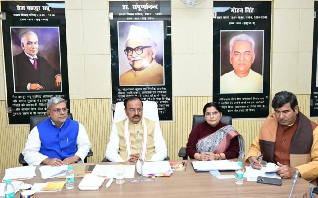 लखनऊ। माननीय नेता सदन विधान परिषद एवं उपमुख्यमंत्री श्री केशव प्रसाद मौर्य की अध्यक्षता में विधान परिषद कक्ष संख्या 77 में बेसिक, माध्यमिक एवं उच्च शिक्षा से संबंधित सदन में उठाये गये विषयों पर अधिकारियों को निर्देश दिये। प्रदेश की शिक्षा व्यवस्था को और अधिक सुदृढ़ और पारदर्शी बनाने के लिए पूरी तरह से एक्शन मोड में है। उत्तर प्रदेश के उपमुख्यमंत्री श्री केशव प्रसाद मौर्य ने विधान परिषद में विपक्ष के नेताओं द्वारा उठाए गए शिक्षा संबंधी गंभीर मुद्दों पर संज्ञान लेते हुए विभाग के उच्च अधिकारियों को तलब किया और सख्त निर्देश जारी किए हैं। नेता प्रतिपक्ष श्री लाल बिहारी यादव सहित 9 अन्य विधान परिषद सदस्यों ने बेसिक, माध्यमिक और उच्च शिक्षा से जुड़ी विभिन्न समस्याओं को सदन के पटल पर रखा था, जिस पर अब शासन स्तर पर बड़ी हलचल शुरू हो गई है।