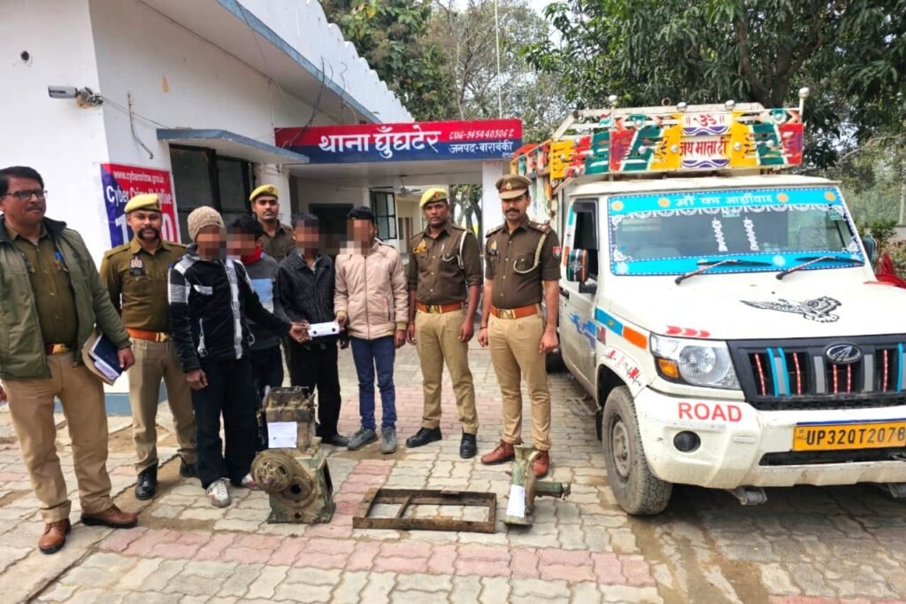 बाराबंकी। थाना घुंघटेर मे दर्ज मुकदमे की जांच दौरान प्रकाश मे आये चार शातिर चोरों को गिरफ्तार कर चोरी का
